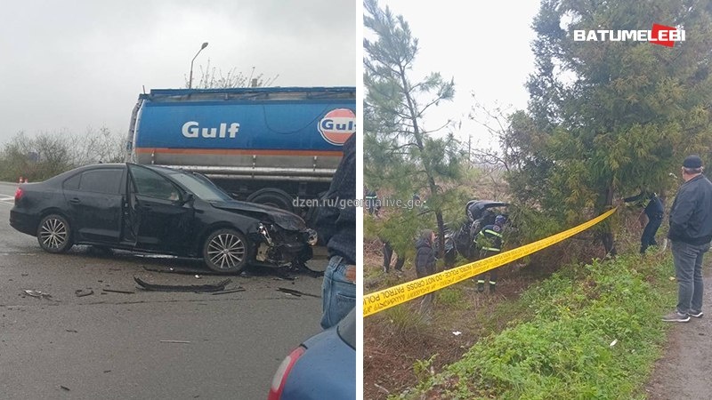 Сегодня, 9 апреля, на въезде на трассу в Кобулети столкнулись два легковых автомобиля
