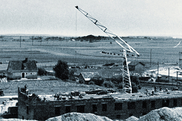 История начала производства башенных кранов Liebherr тесно связана с основанием компании и послевоенным восстановлением Германии. В 1949 году Ханс Либхерр, управлявший строительной фирмой своих родителей в Южной Германии, разработал первый мобильный башенный кран TK 10. Этот кран отличался простотой транспортировки и монтажа на строительной площадке, что было критически важно для послевоенного восстановления страны. Изобретение крана стало отправной точкой для создания компании Hans Liebherr Maschinenfabrik (инженерные мастерские), основанной в том же году в городе Кирхдорф. После успеха TK 10 Liebherr начал выпуск новых моделей башенных кранов, что превратило небольшую строительную фирму в производителя строительной техники. В 1950-х годах компания столкнулась с дефицитом комплектующих, таких как зубчатые колеса для редукторов. Это привело к тому, что Ханс Либхерр начал самостоятельно производить зуборезные станки для их изготовления. В 1958 году Liebherr открыл первый завод за предел