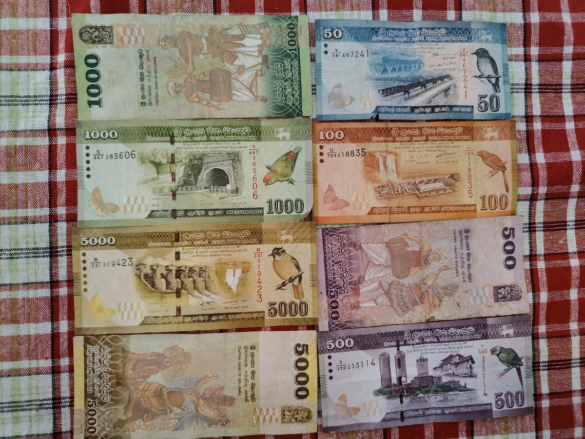 На данный момент курс ланкийской рупии к рублю 1₽ = 3,45 рупии. Удобно для подсчёта: мы для простоты делили все цены на 3 и получали стоимость в рублях. Ехать в Шри-Ланку можно и с долларами, и с евро, но именно с новыми долларами выгоднее. Да на острове действуют два курса: курс за новый доллар (не старше 2013 года) и за старый. Обменивать деньги можно в банках и магазинах, экскурсионных бюро с вывеской «Exchange». Сильной разницы я не заметила, но всегда сверяйте с официальным курсом. Лучше менять не сразу все деньги, иначе вам выдадут огромную пачку, с которой потом таскаться ещё. Деньги в Шри-Ланке очень яркие и симпатичные: на одной стороне купюр изображены местные птицы, на другой — многообразие народных танцев в традиционных костюмах. Парочку оставила себе для коллекции с разных стран.