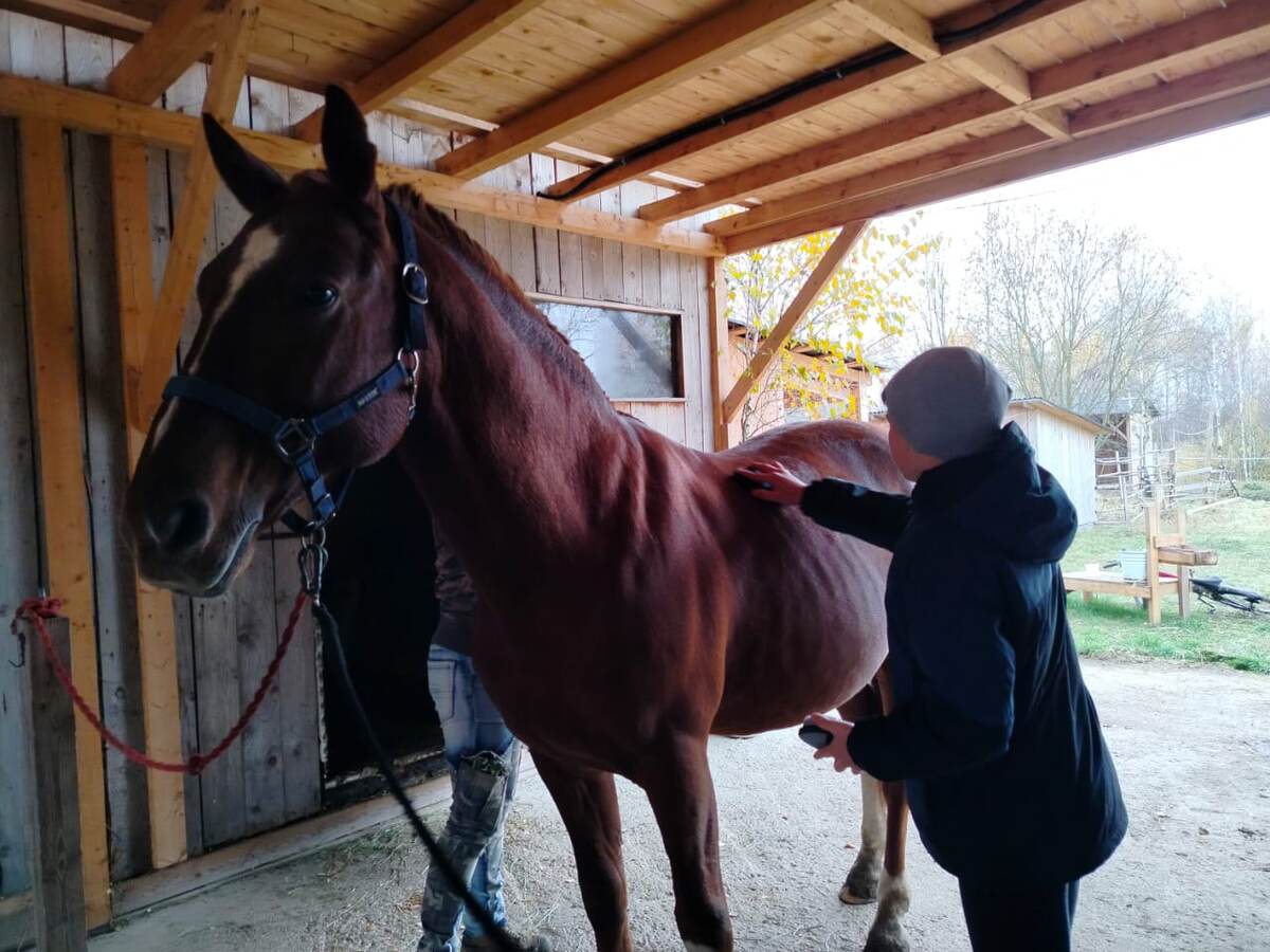 Перед каждой тренеровкой всадник обязан внимательно подготовить свою лошадь к тренеровке. Сначала лошадь необходимо почистить. Это нужно делать очень внимательно и качественно, ведь если чистку произвести некачественно, лошадь может испытывать дискомфорт на тренеровке, что может влиять на безопасность всадника. Лошадь чистят скребница и щетками. Копыта чистят копытным крючком. Хвост и гриву расчёсывают расческами. Скребницей и щеткой лошадь чистят обычно круговыми движениями или против шерсти. При чистке такими движениями чистка получается более качественной. Скребницей нельзя чистить те участки где выступают кости и суставы, так как их можно травмировать. Перед тренировкой очень важно расчистить копыта. Если этого не сделать, лошадь может захромать. Чистить копыта лучше в деннике, чтобы не разносить грязь по конюшне. Чтобы попросить лошадь дать переднюю ногу, нужно плавно провести по задней части ноги от колена к щетке. Чтобы попросить лошадь дать заднюю ногу, нужно сделать все то ж