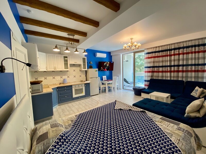 Гостям доступны все удобства для полноценного отдыха: полностью оборудованная кухня, стильная гостиная и уютные спальни. На территории комплекса находятся бассейны, зоны для отдыха и прогулок, а также близость к пляжу и местным достопримечательностям. Здесь вы сможете насладиться как активным отдыхом, так и спокойными вечерами с бокалом вина на террасе, любуясь закатом. Апартаменты Морские — это ваш идеальный выбор для незабываемого отпуска в Ялте.