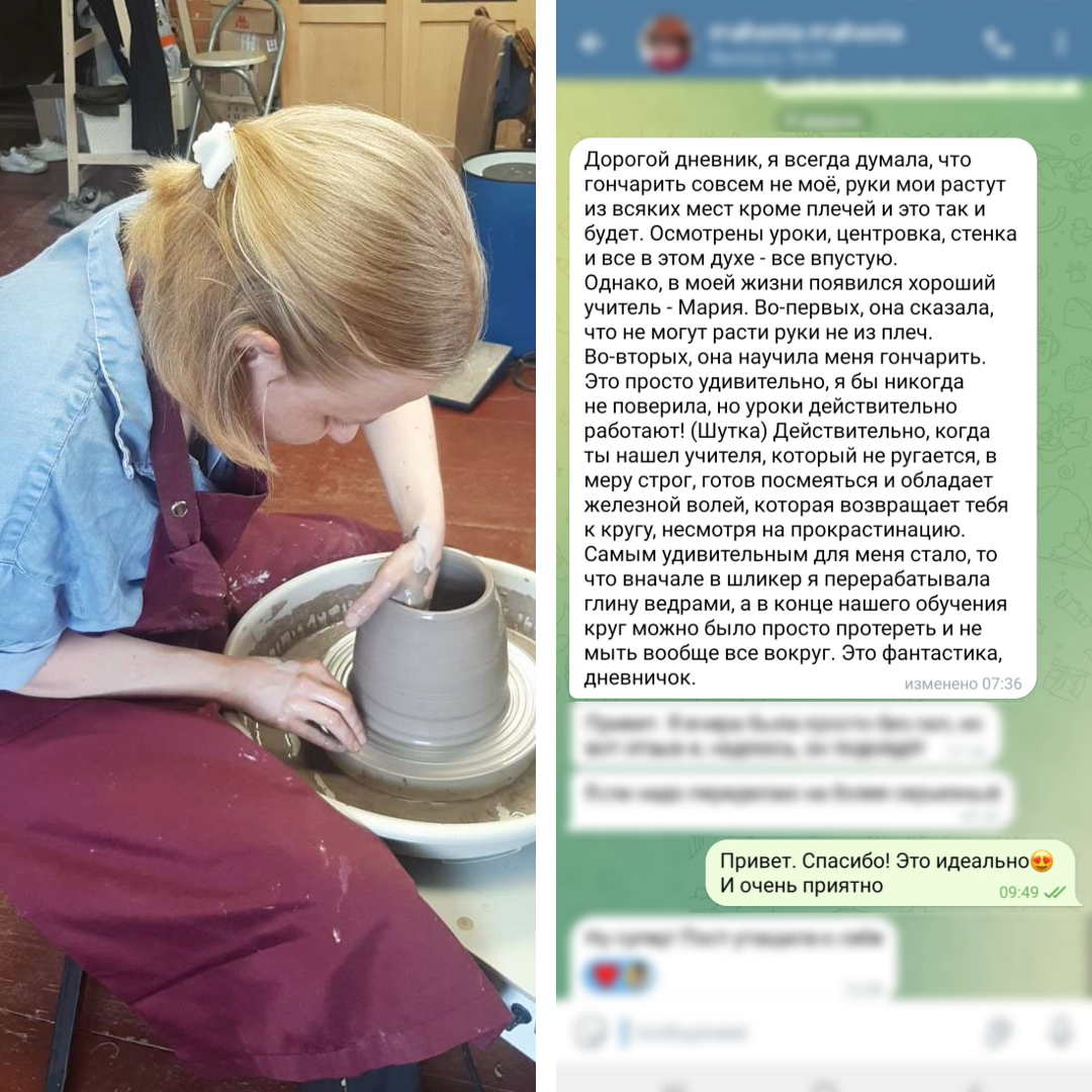 Приглашаю вас на авторский курс по работе за гончарным кругом! ✨ Почему именно мой курс? • Индивидуальные занятия • Удобное расписание: 2 занятия в неделю по 1,5 часа • Всего за 12 занятий вы освоите весь цикл работы за кругом • Занятия проходят в уютной студии в Приморском районе Спб • Всё оборудование и материалы включены в стоимость 🎓 Чему вы научитесь: ✓ Выбирать керамическую массу подходящую под ваши задачи ✓ Правильно подготовить глину к работе за кругом ✓ Центровать глину на круге ✓ Создавать различные формы(миски, вазы с узким горлом, закрытые формы, плоские формы, формы с крышкой) ✓ Обтачивать изделия 🎨 Курс подходит для новичков, которые никогда не работали с глиной. Курс построен так, чтобы отработать каждый этап работы за кругом. В конце курса вы сможете самостоятельно воплотить за кругом любую идею. 🎁 Специальное предложение: Стоимость курса: 40 000 рублей Для первого записавшегося: скидка 5 000 рублей! Возможна оплата в два этапа 💫 В курсе запланирована домашняя рабо