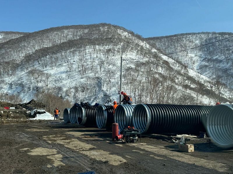 📌 Непогода скорректировала работу дорожников на Высотной Прошедший циклон осложнил работы по капитальному ремонту городской части федеральной трассы «Морпорт-Аэропорт» в районе объездной дороги на улице Высотной, сообщили агентству «КАМЧАТКА-ИНФОРМ» в дорожно-строительной компании «Устой-М». Как рассказали в компании, в настоящее время активно ведется укладка пяти водопропускных сооружений взамен ветхих, срок эксплуатации которых давно истек. Одновременно идет подготовка к земляным работам и последующей укладке еще двух гофрированных труб. Сейчас на объекте трудятся порядка 40 человек, задействованы экскаваторы, бульдозеры, погрузчики, катки и самосвалы. Прошедший циклон существенно осложнил работы: обильные осадки сделали грунт влажным и тяжелым, из-за чего требуется больше времени и сил для укладки дорожного основания. В «Устой-М» подчеркивают, что сквозной проезд по дороге пока невозможен для всех видов транспорта. Однако со стороны авторынка транспорт может свободно доехать до