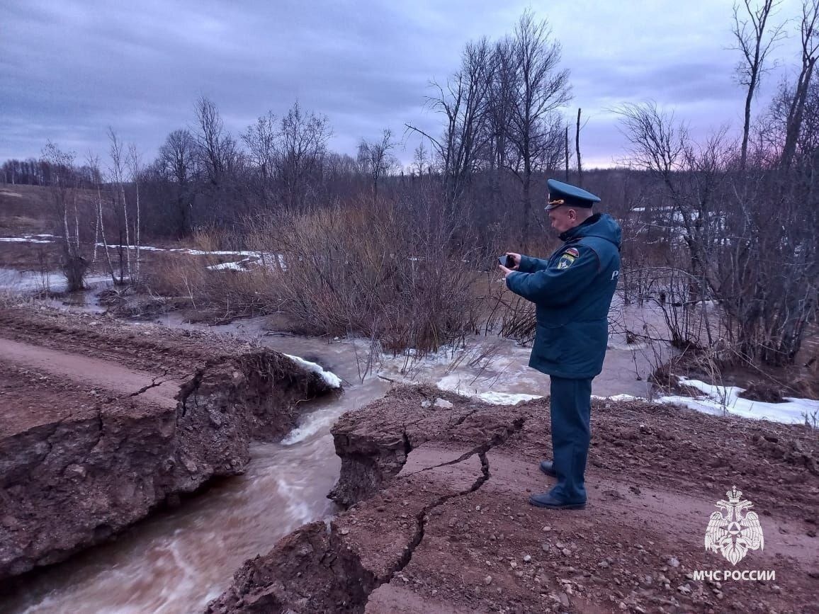 В Башкирии между населенными пунктами произошел промыв грунтовой дороги