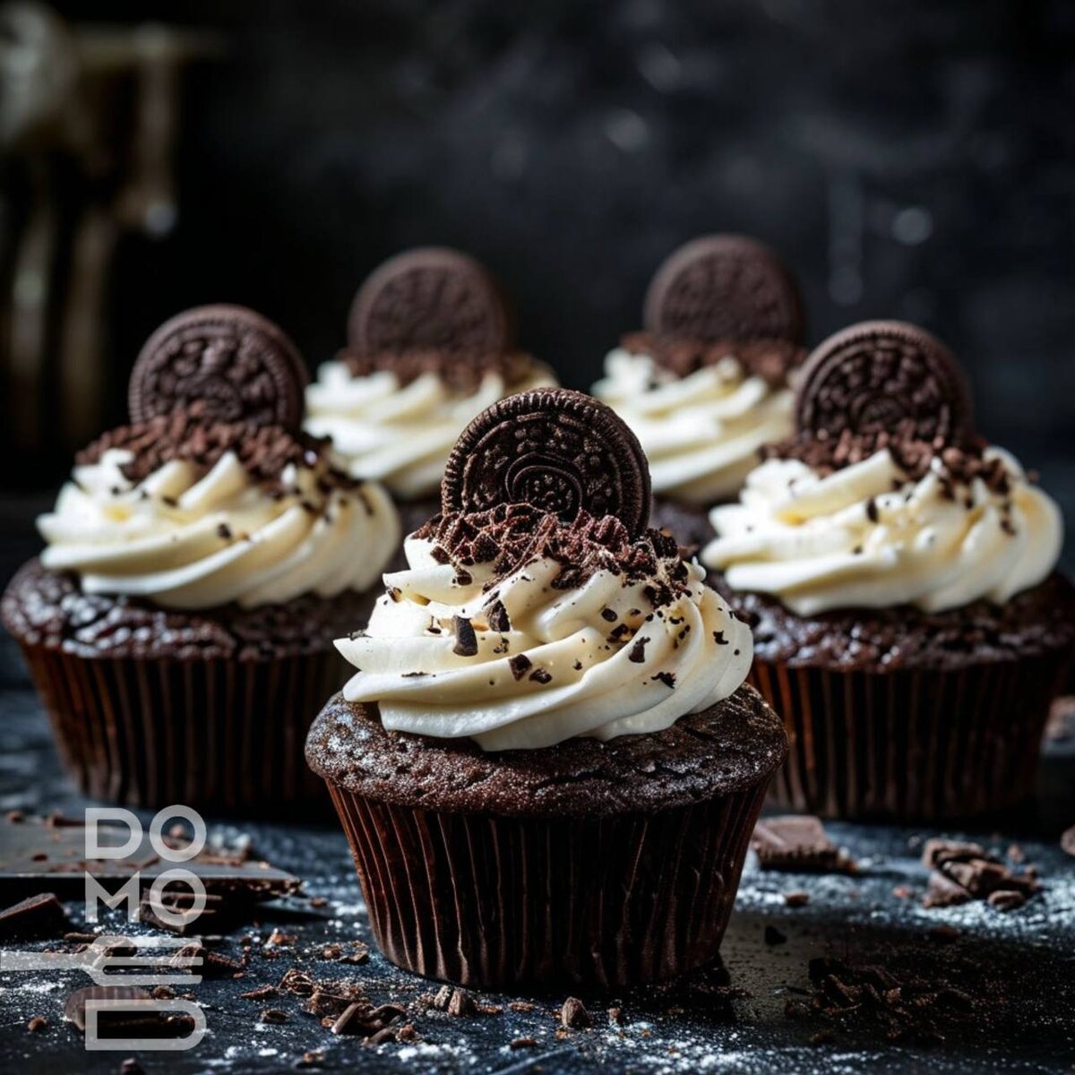 🍫 КАПКЕЙКИ «OREO» Шоколадные кексы с угольным эффектом и нежным кремом из маскарпоне — идеальный десерт для фанатов знаменитого печенья! ❤️💛❤️💛💛💚❤️💛💛💚💚 (на 12 шт): Для кексов: - Растительное масло — 75 мл (без запаха) - Яйца — 2 шт. (комнатной температуры) - Сахар — 90 г - Молоко — 130 мл - Пшеничная мука — 225 г - Какао-порошок — 35 г (не алкализованный) - Активированный уголь — 2 таблетки (10 г) - Разрыхлитель — ⅔ ч.л. - Масло — для смазывания форм Для крема: - Маскарпоне — 200 г (охлаждённый) - Сливки 33% — 130 мл - Сахарная пудра — 40 г - Печенье Oreo — для украшения 💚💛❤️❤️❤️💚❤️💛❤️💛💛❤️💛 1️⃣ Приготовление теста: 1. Венчиком взбейте масло с сахаром и яйцами до однородности. 2. Влейте молоко, перемешайте. 3. Просеянные муку + какао + разрыхлитель смешайте с измельчённым в пыль углём (используйте ступку). 4. Постепенно введите сухую смесь в жидкую, но не переусердствуйте — тесто должно оставаться слегка комковатым. 2️⃣ Выпечка: • Разогрейте духовку до 180°C. • С