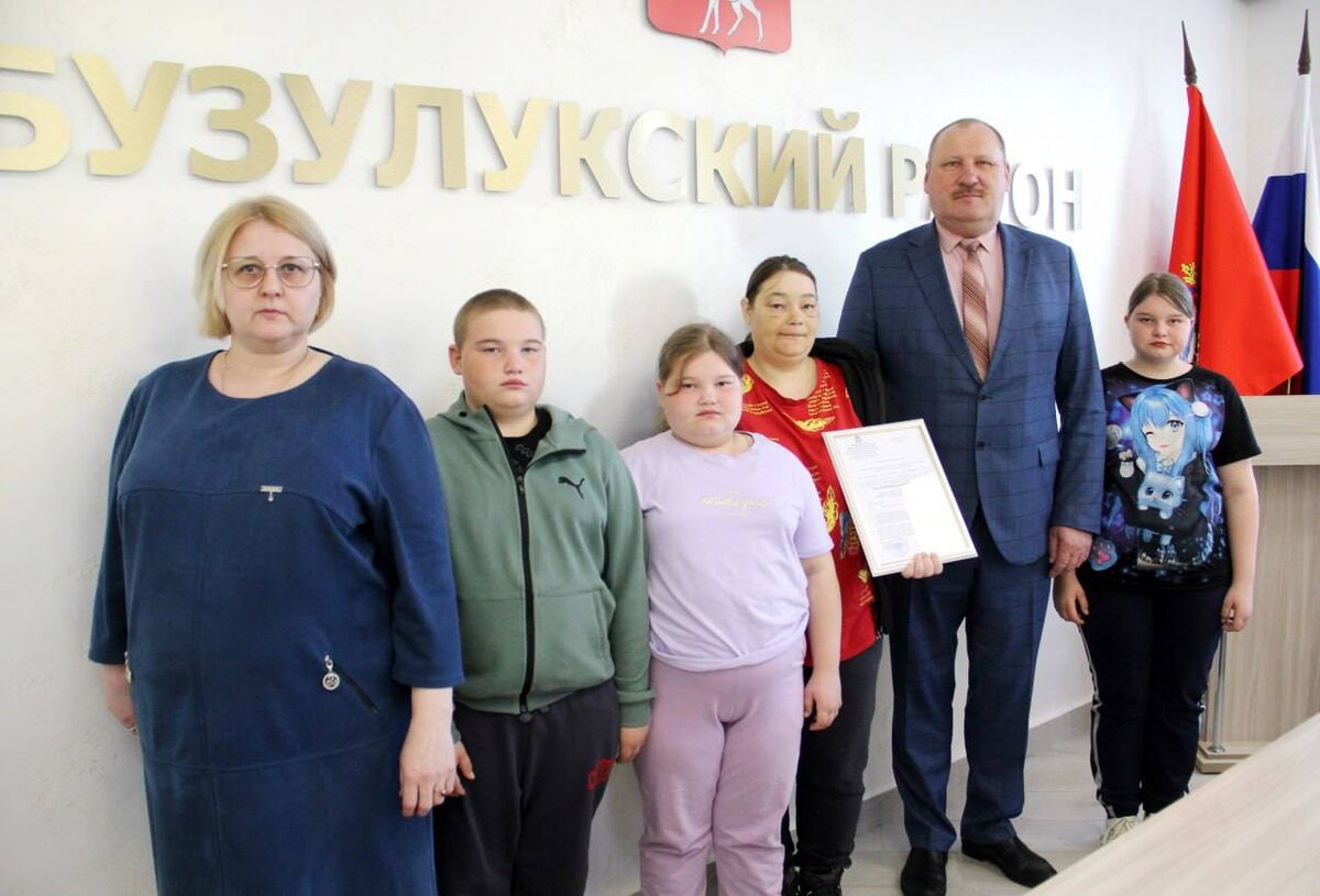Многодетной семье из поселка Колтубановский в Бузулукском районе вручили свидетельно на приобретение жилья