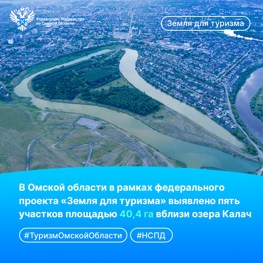 В Управлении Росреестра по Омской области состоялось второе заседание Штаба по выявлению земельных участков в рамках реализации проекта «Земля для туризма», который направлен на повышение туристического престижа региона через привлечение инвестиций в развитие его рекреационных территорий. Вслед за тремя земельными участками вокруг озер Линёво и Щучье общей площадью 53 га, расположенных на территории Муромцевского муниципального района, в Перечень земельных участков и территорий, выявленных для вовлечения в туристскую деятельность (далее – Перечень), принято решение включить также пять земельных участков с кадастровыми номерами 55:34:011001:123, 55:34:011001:131, 55:34:011001:124, 55:34:011002:3, 55:34:011002:2 общей площадью 404362,00 кв. м (40,4 га), окаймляющих озеро Калач. Все указанные отрезки имеют вид разрешенного использования «отдых (рекреация)». «Озеро Калач – самое большое пойменное озеро в Калачинском муниципальном районе Омской области. Оно находится в центре города Калачин