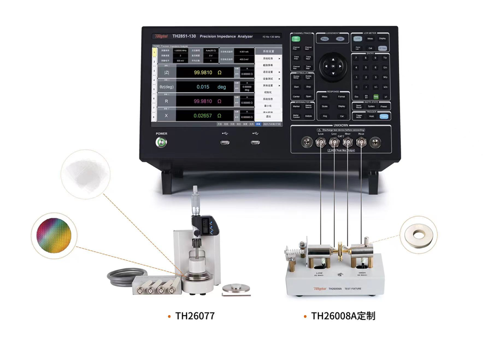 Для анализа свойств пьезоэлектрических кристаллов широко применяется измерение их параметров с использованием анализатора импеданса или RLC-метра. Эти устройства позволяют установить такие важные характеристики, как резонансные частоты, импедансные параметры и коэффициенты электромеханической связи. Одним из таких решений является анализатор импеданса Techmize TH2851, который обеспечивает высокоточное измерение свойств пьезоэлектриков в широком частотном диапазоне. Он оснащён функцией сканирования импеданса и возможностью построения детализированных резонансных кривых. Благодаря высокой точности, надёжности и разнообразным специализированным аксессуарам, модель TH2851 оптимально подходит как для лабораторных исследований, так и для производственного применения. С помощью анализатора импеданса можно построить график зависимости сопротивления пьезоэлектрического образца от частоты. На таком графике резонанс определяется точкой наименьшего сопротивления, а антирезонанс — точкой наибольшег