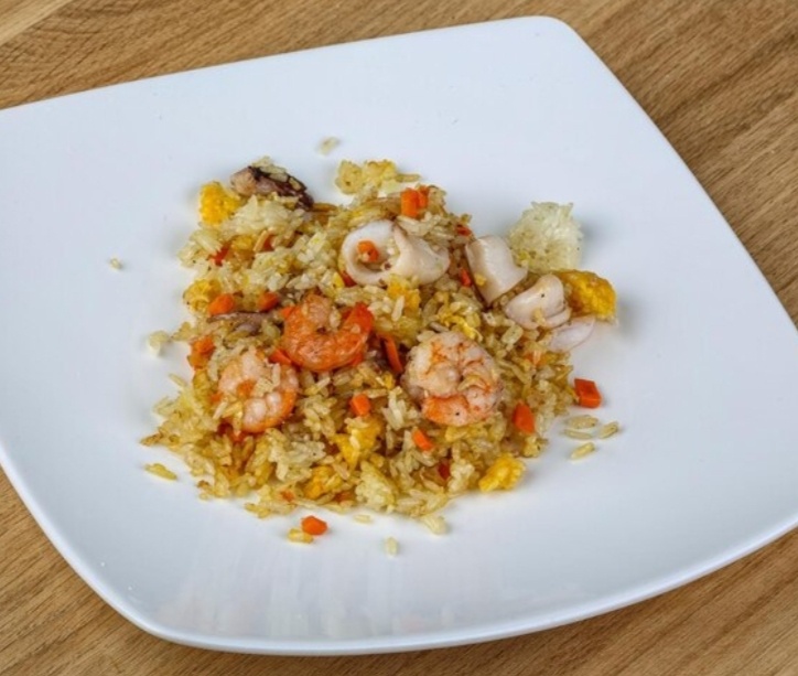 Здравствуйте, уважаемые читатели моего канала. Сегодня хочу рассказать вам про потрясающе вкусное блюдо. Начну с того, что не так давно в Москве открылась сеть ресторанов, использующих в своём меню рыбу и морепродукты, никакого мяса. Не знаю, не будет ли это выглядеть как реклама, но всё равно напишу. Если вы ещё не были в сети ресторанов "Моремания", обязательно сходите, всё очень вкусно и бюджетно. Так вот, есть там одно блюдо, о котором я думаю буквально день и ночь, насколько оно мне пришлось по вкусу, речь идёт о жареном рисе с морепродуктами. Я не смогла не попробовать приготовить это блюдо сама. Конечно, наверняка у поваров "Моремании" есть свои секреты приготовления, так как мое блюдо получилось вкусным, но всё же немного не таким, но я не могу не поделиться рецептом, возможно, вам удастся найти какие-то свои изюминки и секреты при приготовлении данного блюда. Рецепт жареного риса с морепродуктами Ингредиенты: - Рис длиннозерный — 200 г - Креветки — 150 г - Кальмар