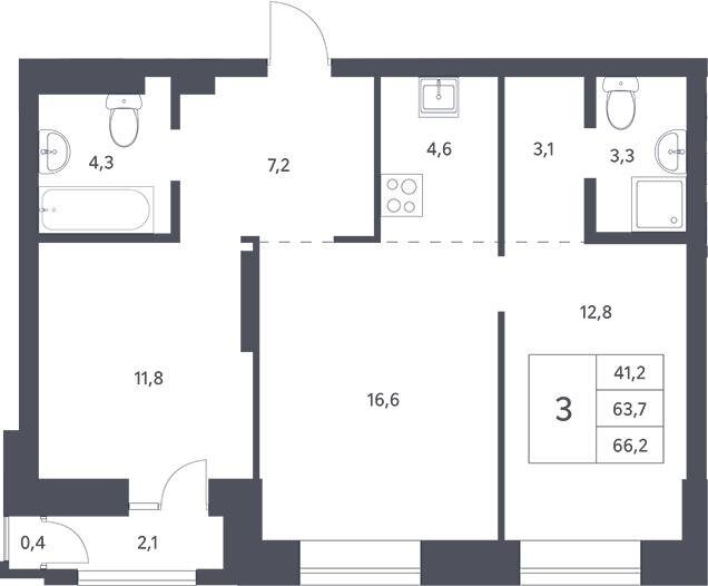 Квартира с мастер-спальней, большой кухней-гостиной и просторной прихожей.