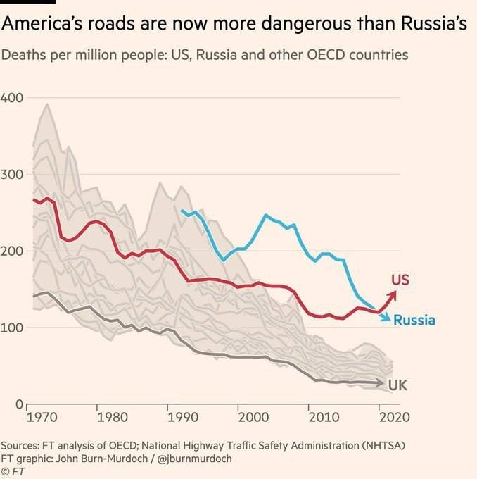 Смертность на дорогах США начала перегонять российскую стату