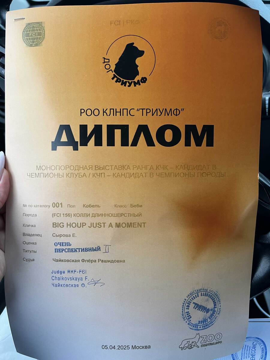 🏆 Поздравляем с новым успехом!!! 🐶 Кобель Биг Хоуп Джаст Э Момент (Фокс) - Колли длинношёрстный 🌐 https://www.petsman.ru/pes-sobaka-i-shchenok.php?moya-sobaka=225-big-houp-dzhast-eh-moment 🏆 2е место моно беби 👑 Дог-ТРИУМФ-весна 2025 🐶 FCI 🏛 Москва 🧑 👨 Эксперты: Чайковская Флёра Рашидовна ⏰ 2025-04-05 #МояСобака #СобачьяЖизнь #ХочуСобаку #ЛюбимаяСобака #Щенки #Собака #СобакаЛюбимая