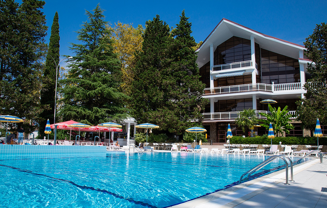 Современный пансионат, при котором работает многопрофильный медицинский центр. Он находится в Адлерском районе рядом с солнечными пляжами. В распоряжении пансионата – свой пляж в паре минут ходьбы от главного жилого комплекса. Здесь можно позагорать на шезлонгах, а затем укрыться от палящего солнца под навесом. Взять пляжный инвентарь можно в прокат у пансионата.