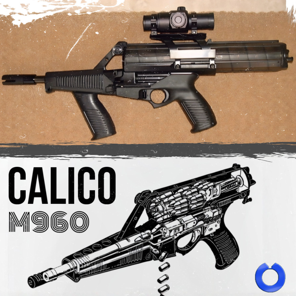 Созданный в 1990 году американской компанией Calico Light Weapon Systems, пистолет-пулемет M960 сразу привлек внимание своей необычной конструкцией. Что делает этот пистолет-пулемет настолько необычным? Главное его отличие — это шнековый магазин, установленный сверху. Вместо традиционного барабанного или коробчатого магазина, M960 использует шнековую систему, что позволяет разместить в нем до 100 патронов 9×19 мм. Это решение обеспечивало стабильную и продолжительную стрельбу с высокой скоростью — до 750 выстрелов в минуту. Несмотря на впечатляющие технические характеристики, Calico M960 имел серьезные проблемы, ограничившие его большее распространение. Во-первых, шнековый магазин был сложен в перезарядке – процесс занимал значительно больше времени, чем стандартные магазины, используемые в MP5 или Uzi. Во-вторых, из-за расположения магазина сверху возникали сложности с прицеливанием и установкой дополнительных прицельных устройств. Дополнительно, механическая подача патронов внутри