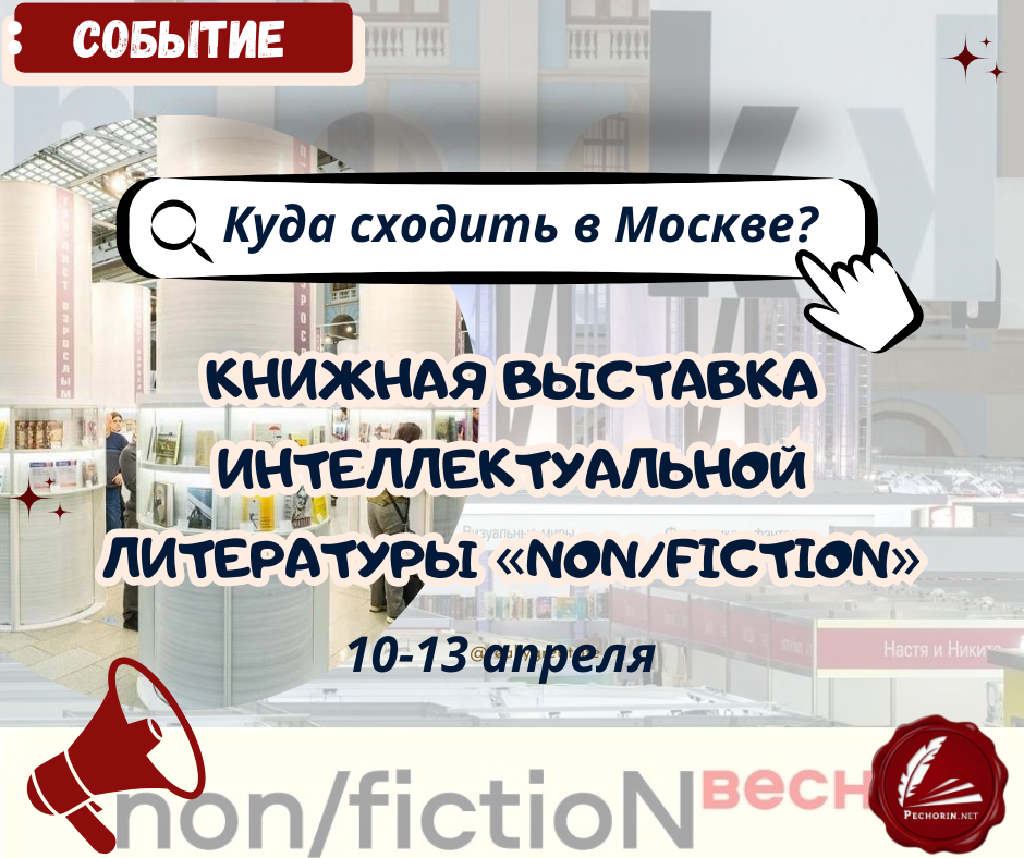 С 10 по 13 апреля в московском комплексе «Гостиный Двор» пройдёт ежегодная ярмарка интеллектуальной литературы Non/fiction, где издательства, авторы, книжные магазины и культурные институты представят свои экспонаты. Можно знакомиться с книгами, читать и покупать их, а ещё – посещать лекции, дискуссии, встречи с авторами и презентации.