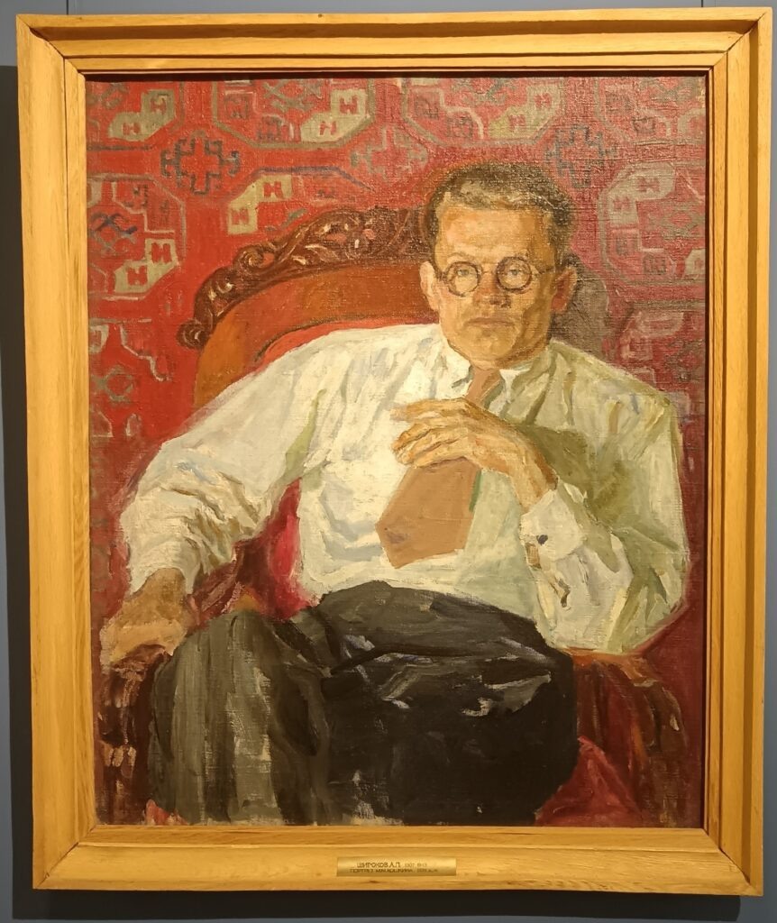 В выставочном зале Вятского художественного музея имени В.М. и А.М. Васнецовых открылась выставка «Приближая Победу» (6+), посвящённая жизни Кирова в годы Великой Отечественной войны. В экспозиции насчитывается около 80 произведений искусства, размещённых в четырёх разделах: «В пространстве полуподвала», «Выставки военного времени. Как это было?», «Воспоминания и свидетели» и «Тема Великой Отечественной войны в произведениях художников из коллекции Вятского художественного музея». Начиная свой путь с раздела «В пространстве полуподвала», мы узнаем о том, как сохранялась коллекция художественного музея. «Узнаёте ли, что изображено на картине?» - спросила экскурсовод. «Репинский особняк», - ответила одна из посетительниц. Основным зданием, в котором размещался Кировский художественный музей А.М. Горького, был особняк Репина. 18 июля 1941 года музей закрыл свои двери на неопределённый срок. Все произведения искусства, а их насчитывалось примерно восемь тысяч, спустили в подвал особняка. В