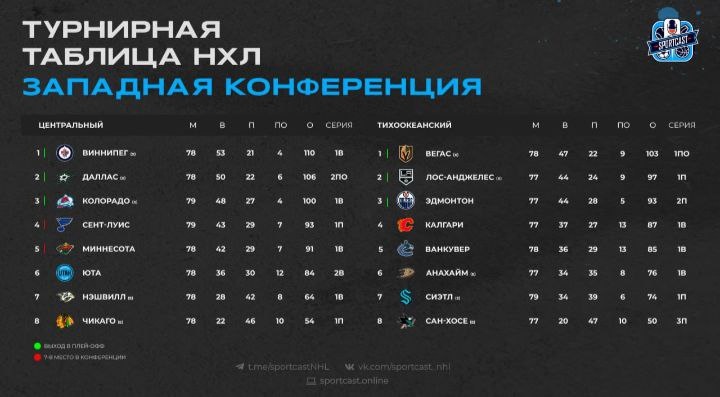 Таблица НХЛ.