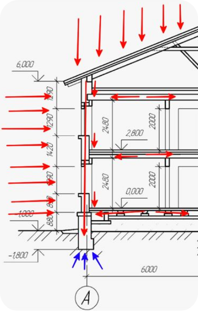 - сбор нагрузок, воспринимаемых фундаментом и распределяемых по грунту.