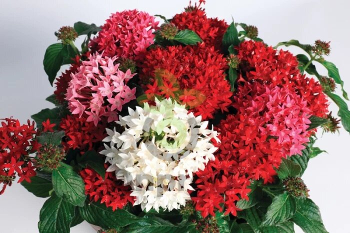 Пентас ланцетный (Pentas lanceolata) в естественных условиях произрастает в тропиках Африки. По своему происхождению и благодаря пятиконечной форме цветка растение получило название “египетская звезда”. Пентас относится к семейству Мареновых, известные представители этого семейства — кофе и гардения жасминовидная.Чаще всего растения формируют в компактные кустики 30-50 см высотой. Прямые, жесткие, побеги пентасов густо облиственны, при правильном уходе почти не оголяются снизу, хорошо кустятся. Листья крупные, до 7 см, сильно заостренные, овально-ланцетные, опушенные, с красивой морщинистостью, которую «обеспечивают» изящные прожилки. Для пентасов характерны самые красивые и яркие холодные, изумрудные оттенки зелени.Формой куста и фактурой листьев пентас напоминает гелиотроп, однако в отличие от фиолетовых соцветий гелиотропа с ароматом ванили цветы египетской звезды не имеют запаха. Цветение пентаса длится несколько месяцев, в комнатных условиях после периода покоя наступает новая вол