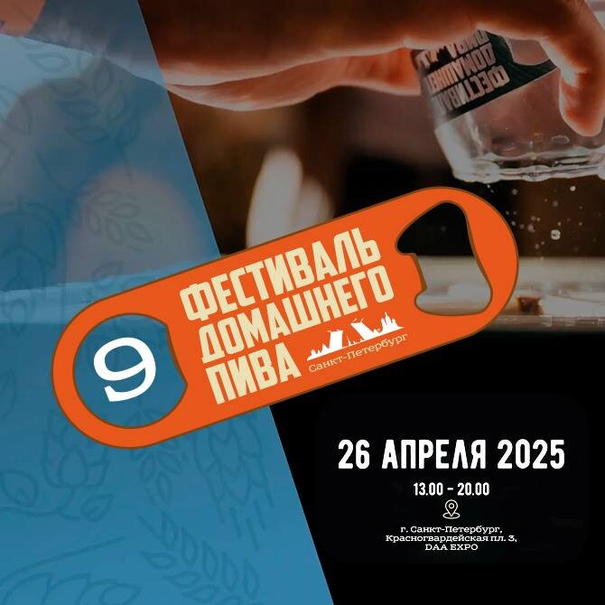 Фестивали и мероприятия Есть желающие прокачать заветный бейдж Home Brewed Goodness? Тогда срочно берем билет на Фестиваль домашнего пива, который состоится 26 апреля в Санкт-Петербурге на площадке выставочного центра Daa Expo. К слову, фестиваль пройдет уже в 9-й раз, а значит организация будет на высоте. Что вас ждет: – 60+ участников-пивоваров + известные пивоварни. – 200 сортов пива, сидра и медовухи. Входной билет = безлимитная дегустация. – Фуд-корт с закусками и домашние деликатесы – Живая музыка. Специальный гость – рок-группа iOSTRA. – Игры, конкурсы, розыгрыши призов. А теперь к приятному Цена билета сейчас - 3000 ₽, а по промокоду VPOISKAHPIVAFREE будет еще и скидка - 15%. Билеты и подробности здесь. Резюмируем: 26 апреля 2025 года с 13:00 до 20:00 (выдача браслетов до 17:00) DAA Expo (Красногвардейская площадь, 3Е, Санкт-Петербург) P.S. Все фестивали и мероприятия отслеживаем в специализированном Календаре.
