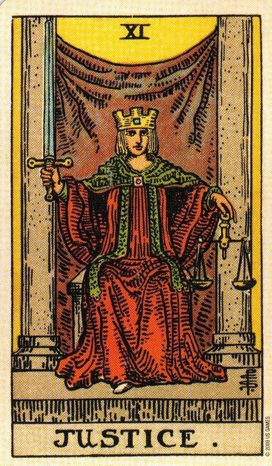 Старший Аркан Правосудие (VIII) в Таро символизирует баланс, справедливость, объективность, закон, честность, правду, причинно-следственную связь, ответственность и принятие решений. Ключевое значение карты — необходимость взвесить все «за» и «против» перед тем, как вынести суждение или принять решение. Карта указывает на стремление к равновесию и гармонии во всех сферах жизни. Это может означать необходимость уравновесить свои эмоции, мысли и действия. Правосудие призывает к беспристрастности и объективности в оценке ситуаций и людей. Решения должны приниматься на основе фактов, а не эмоций или предубеждений. Карта может символизировать юридические вопросы, контракты, соглашения и необходимость соблюдения правил. Она также может указывать на последствия нарушения законов, как юридических, так и моральных. Правосудие призывает к честности с самим собой и окружающими. Это карта, которая напоминает о важности правды и о том, что ложь рано или поздно будет раскрыта. Карта подчерки