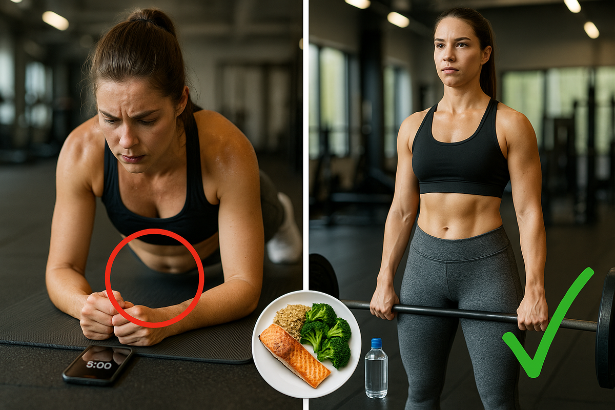 «Планку держу по 5 минут — когда пресс вылезет?» Ответ: никогда, если ты продолжаешь делать бестолковые вещи. Первое, что делают новички — выкидывают хлеб, сладкое, колбасу и жиры.