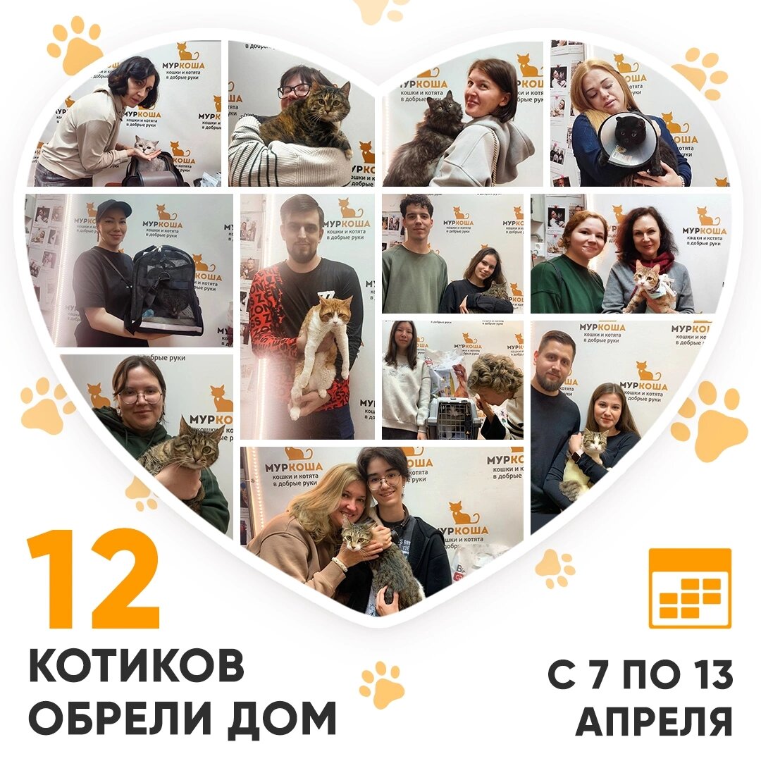 Друзья! Сегодня среда, и мы, как обычно, подводим итоги работы «Муркоши» за прошедшую неделю. Кто же стал счастливым выпускником Центра помощи кошкам «Муркоша» с 7 по 13 апреля 2025 года? 😺 🥳 Итак, за прошедшую неделю домашними и любимыми стали 12 котиков! Милейший Филат месяц жил в подвале. Благодаря неравнодушным людям котика доставили в «Муркошу», где он отогрелся и понял, что сможет стать домашним. На этой неделе Филат понравился доброй хозяйке! Малыш Барти приехал к нам с передержки. Красавец с белыми лапками и подбородочком быстро очаровал людей, которые решили сделать Барти счастливым – подарить ему дом! Бывшедомашняя Нармин оказалась в «Муркоше», ведь ей нужно было найти новую хозяйку. И вот, настал момент, когда Нармин отправилась домой, где уже живут наши выпускники – Мистер Блэк и Братислав! Котики передали совместный привет. Любознательная Трюфелька раньше была домашней. Но, к сожалению, её хозяйки не стало. Кошечка прибыла в «Муркошу». Здесь она поняла, что снова обр