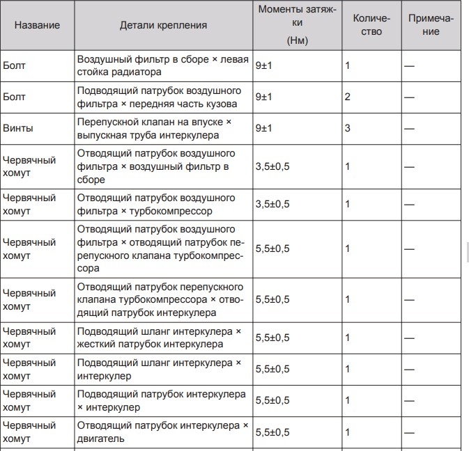 Момент затяжки системы впуска и выпуска (7DCT) HAVAL JOLION