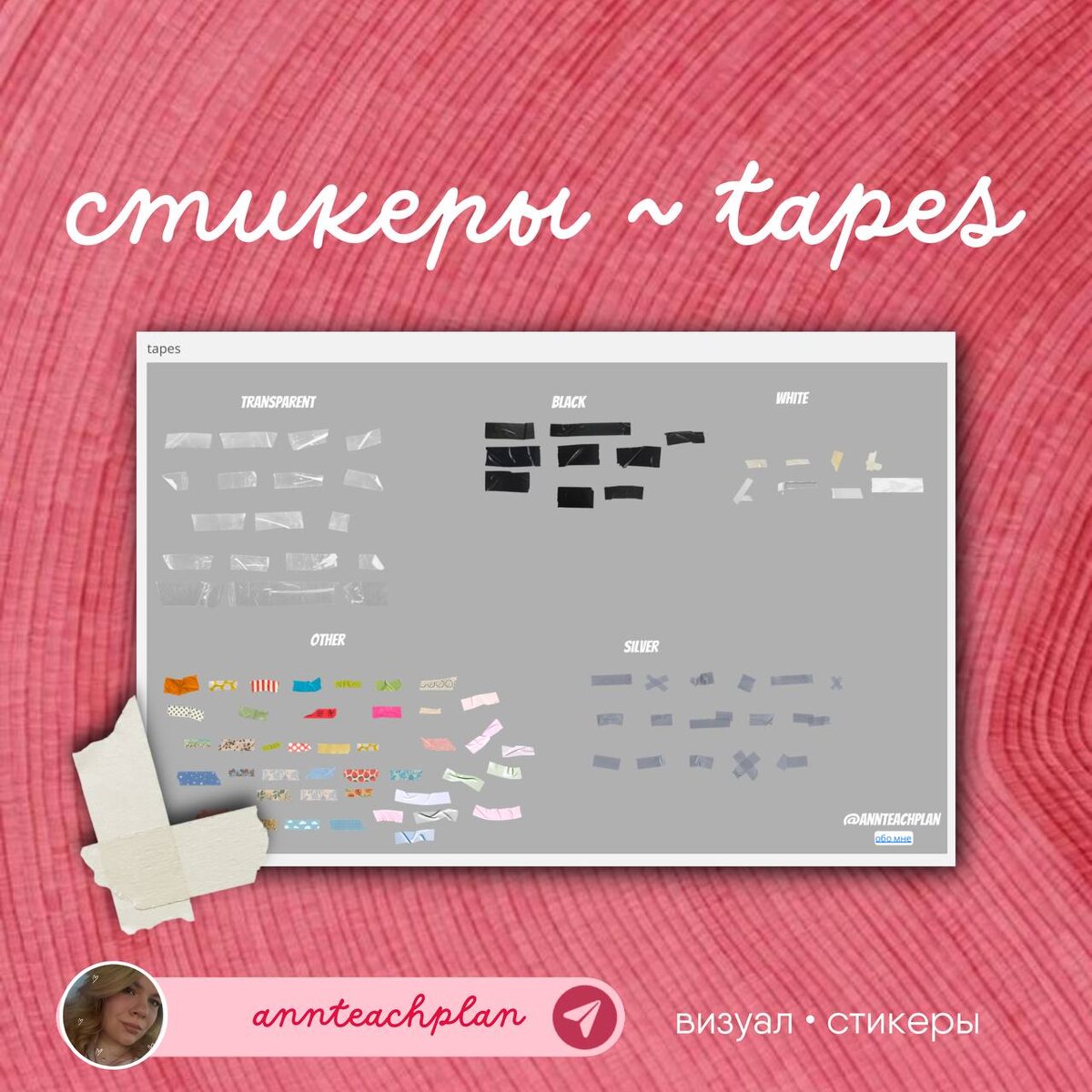 ~ tapes - tapes - tapes 💐#визуал Что бы это ни было - пост или репост в соцсетях, оформление заданий, доски на Miro или фотоколлажа, я очень часто использую любимые скотчи. Они всегда лаконично, но как же классно дополняют картинку. Поэтому сегодня делюсь набором разных скотчей: прозрачные, черные, белые, разноцветные. 🌝Скопировать с доски Miro 🃏 Скачать архив на Яндекс.Диск 💌 — Если будете пользоваться Буду рада, если напишите, какие еще спикеры были бы актуальны для работы/блогов. Еще у меня есть: ⭕️Весенне-летние стикеры с картинками oil elements Весенние стикеры Набор стикеров в ТГ с лентами и скотчем (часто использую их для оформления репостов) ❤️❤️❤️ поддержать канал бустом ~ @annteachcreate #visdrop