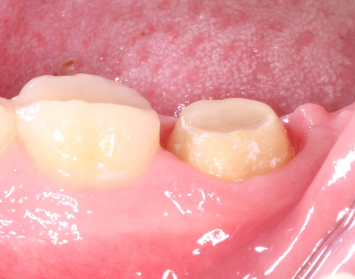 Наступил момент стабилизации пересаженного зуба и можно было приступать к его ортопедической коррекции, а именно обработке и покрытию коронкой.