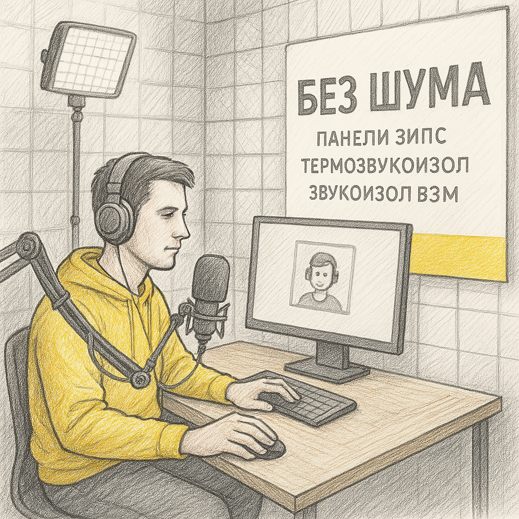 🎥 Комната стримера 10 м²: Стены — панели ЗИПС, потолок — Термозвукоизол с ГКЛ, дверь уплотнена. Итог: тишина, никакого фона в записи, микрофон ловит только голос.