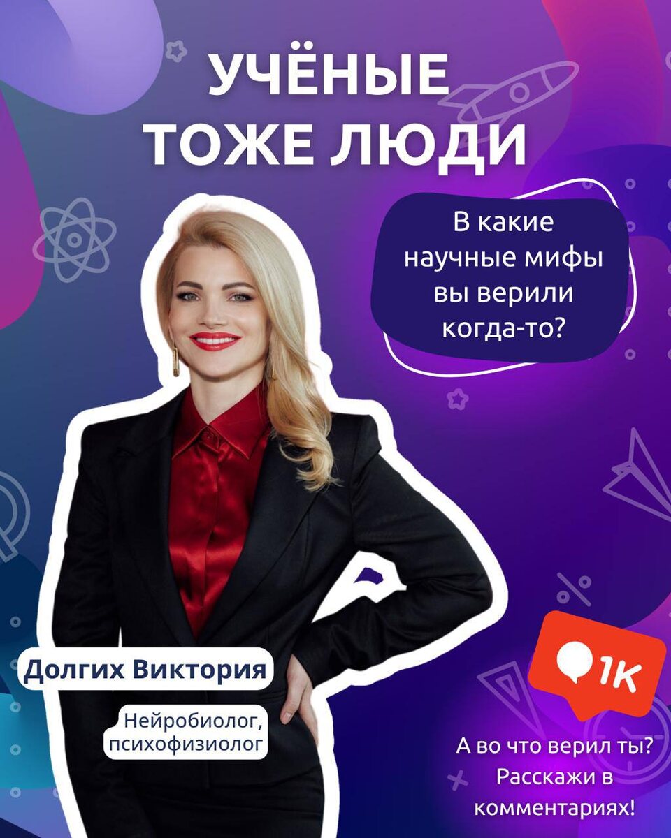 В рамках рубрики #УченыеТожеЛюди мы спросили нейробиолога Викторию Долгих, в какие научные мифы она сама верила когда-то. И вот ее ответ: