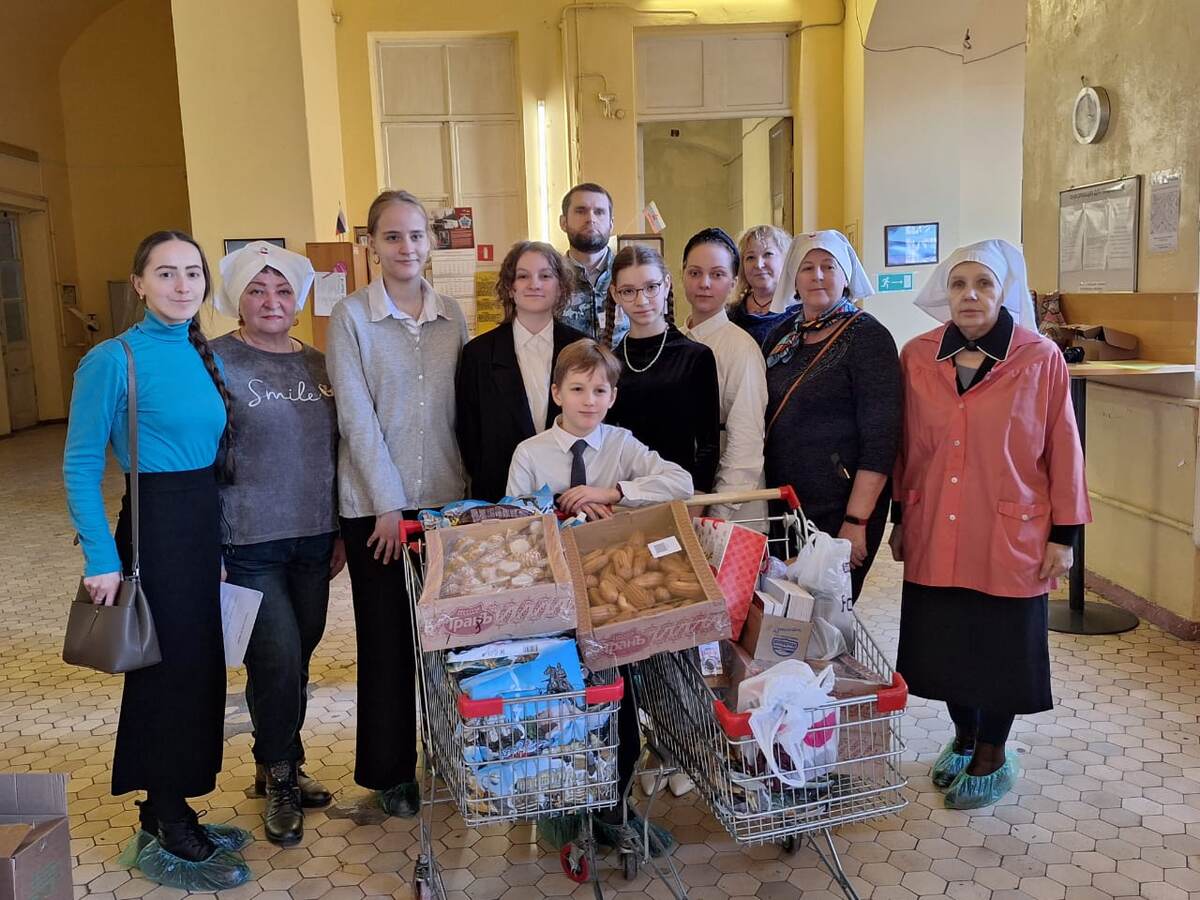 Группа воспитанников детской Воскресной школы Казанского кафедрального собора с преподавателями, 6 апреля, посетили раненых воинов СВО, проходящих лечение на кафедре пропедевтики внутренних болезней Военно-медицинской академии.
