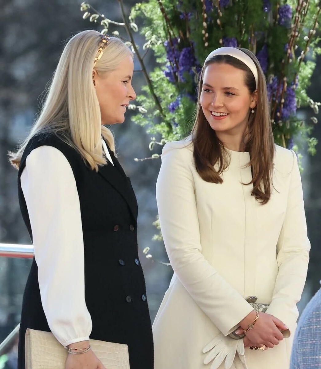 🇳🇴🇮🇸 А в Норвегии вчера принимали президента Исландии, Хадлу Тоумасдоуттир. Наконец, наследница тоже поучаствовала 💪 На ней жемчужная тиара Boucheron, которую мы недавно разбирали