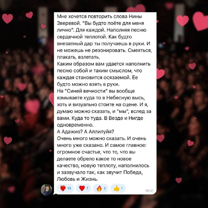 Читаем ваши отзывы и понимаем, что все, что мы делаем, все не зря! Каждое ваше сообщение — это для нас настоящая награда и мощный источник вдохновения. Вы мотивируете нас творить, экспериментировать и стремиться к новым высотам! Мы счастливы, что наша музыка находит отклик в ваших сердцах. Ваши эмоции и поддержка делают наши концерты особенными, а каждое выступление — незабываемым событием. Продолжайте делиться своими впечатлениями, ведь именно вы — наша главная мотивация! Мы с нетерпением ждем новых встреч и обещаем радовать вас новыми композициями и яркими моментами. С любовью и благодарностью, Леонид Овруцкий и группа Кватро ❤️