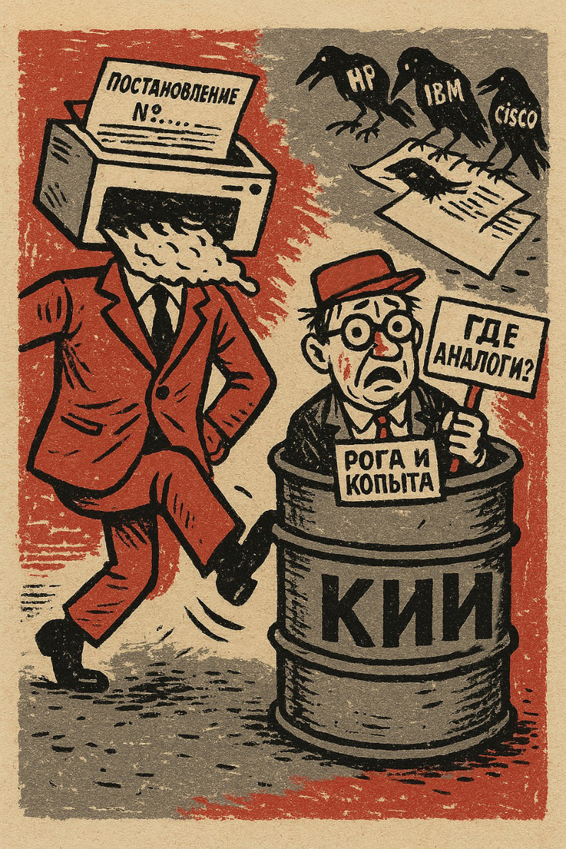 2028 год на дворе. Один весьма крупный субъект КИИ, назовем его условно "Рога и Копыта Инфотех", получает "заключение об отсутствии аналогов" по ПП РФ № 1135 на некое импортное "железо" и соответственно использует его на ЗО КИИ.