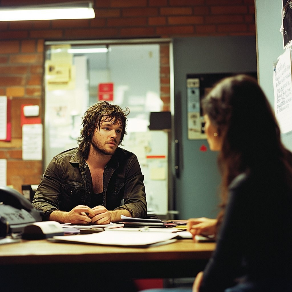 Создано на основе запроса: Cinematic scene. Australia. Extreme close up. Colour. Record label office. A disheveled 35 year old rockstar sits at a desk, opposite a female record label manager. --- Автоперевод: Кинематографическая сцена. Интересно получилось? 🤔 https://dzen.ru/id/65c0c65c86e4f837c27b24d7 #ИИ #AI #нейросеть #midjourney #art