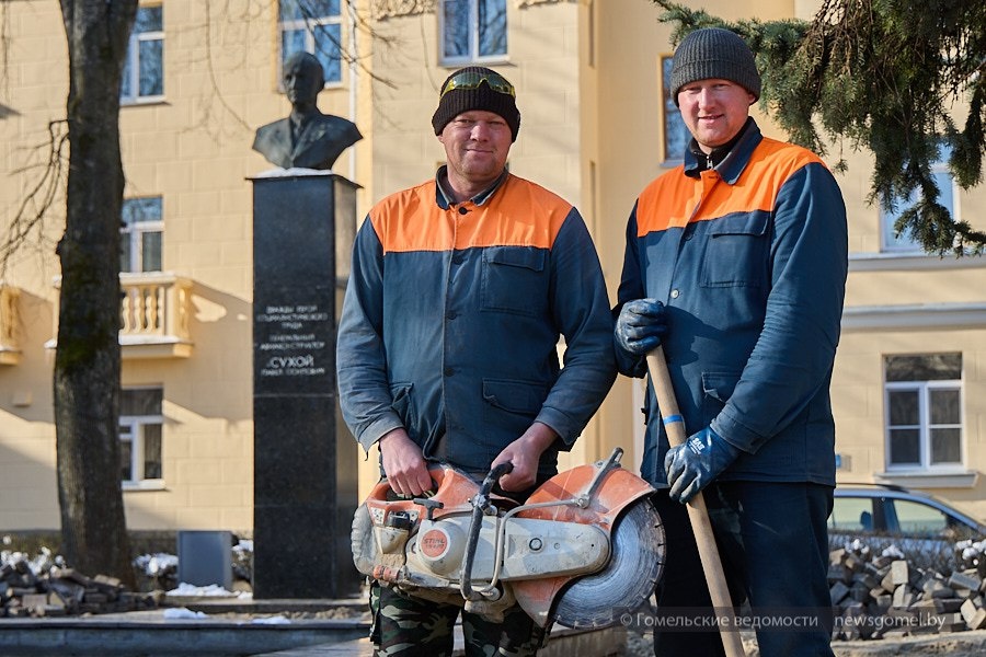 В Гомеле благоустраивают сквер имени П. О. Сухого