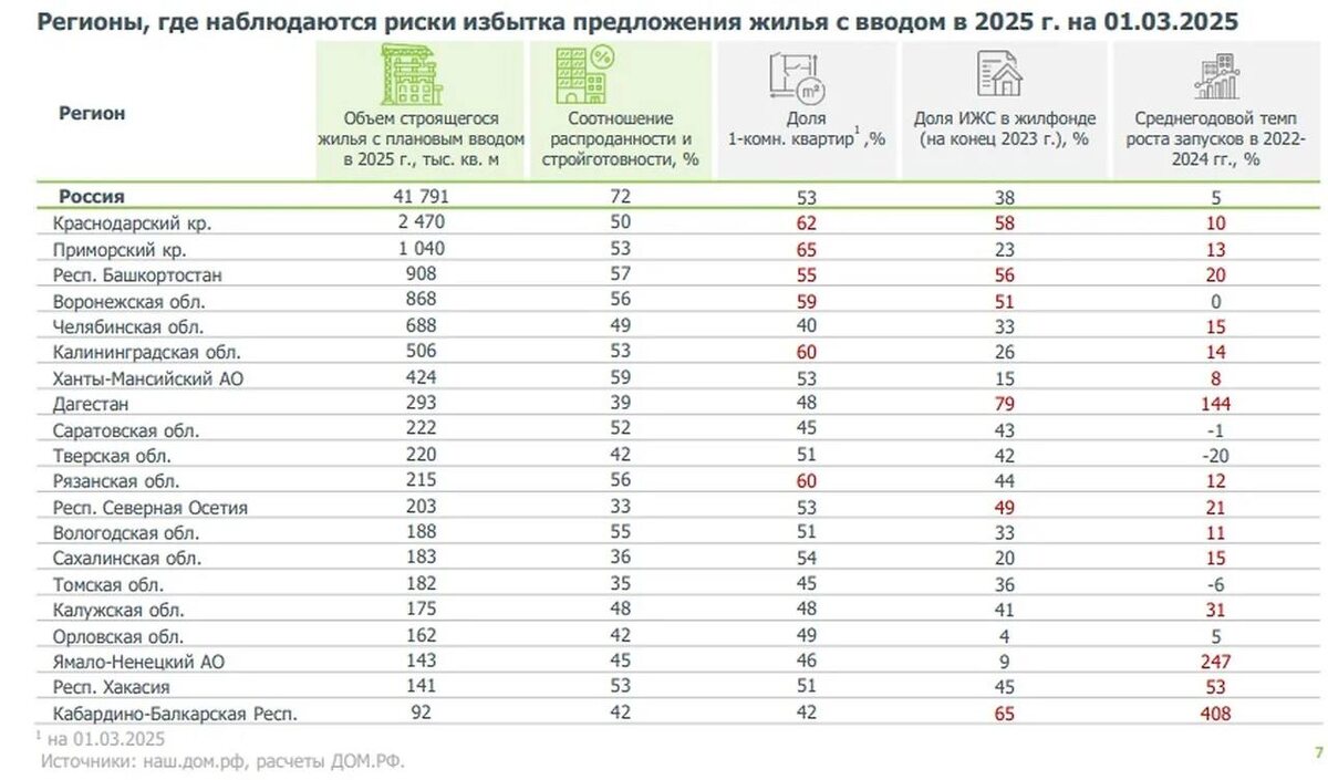 В Кабардино-Балкарии риск затоваренности рынка жилья новостройками, утверждают в Дом.рф: В Кабардино-Балкарской Республике в строительстве находится 92 тыс. кв. м запланированного к вводу в этом году жилья. Из них — 65% индивидуальные жилые дома, а 42% — однокомнатные квартиры. Республика лидирует среди российских регионов по показателю среднегодового темпа роста запусков новых жилищных проектов в 2022-2024 годах — 408%, что, по мнению аналитиков «Дом.рф», обуславливается эффектом низкой базы. @gazetayuga