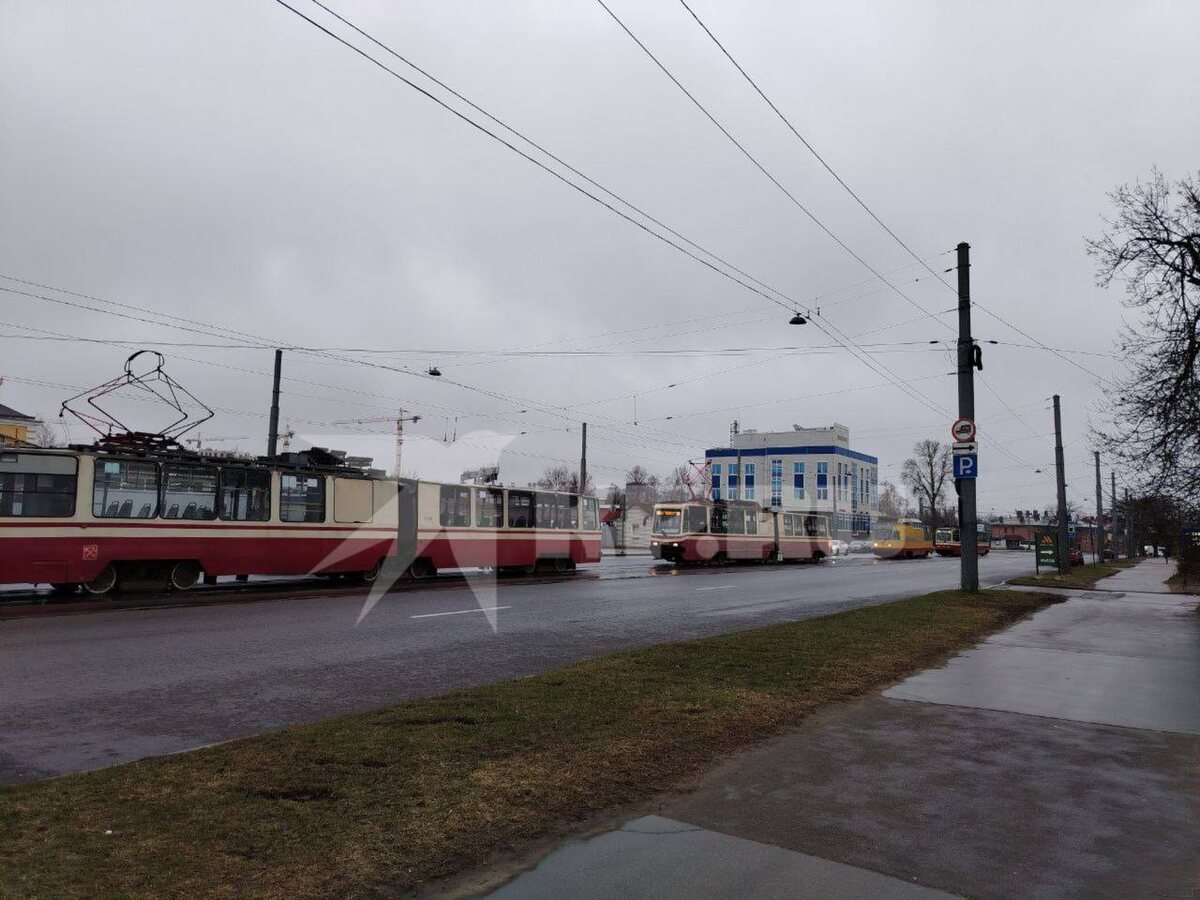 ⚡️Семь трамваев встали в пробку на Политехнической в сторону станции метро «Площадь мужества