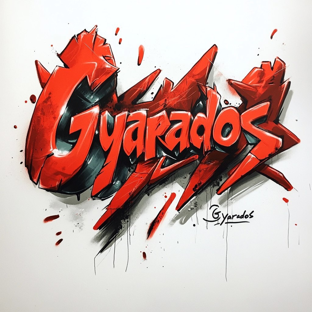 Создано на основе запроса: only the name "Gyarados " in insane graffiti lettering on a white background