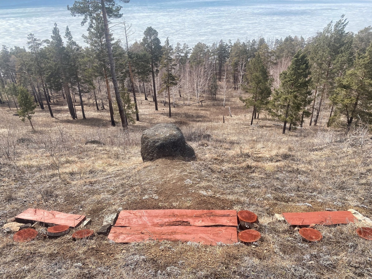 Не все знают, что совсем недалеко от официального начала тропы на мыс «Бык», спрятавшись за небольшим лесом на пригорке, расположена смотровая площадка со своеобразным столиком в виде огромного камня.