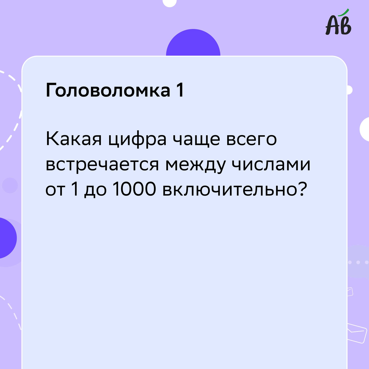 Π·Π°Π΄Π°ΡΠ΅ΠΊ, ΠΊΠΎΡΠΎΡΡΠ΅ ΡΠΎΡΠ½ΠΎ Π½Π΅ Π΄Π°Π΄ΡΡ ΡΠΊΡΡΠ°ΡΡ: ΡΡΡ ΠΈ Π»ΠΎΠ³ΠΈΠΊΠ°, ΠΈ Π½Π°Π±Π»ΡΠ΄Π°ΡΠ΅Π»ΡΠ½ΠΎΡΡΡ, ΠΈ Π½Π΅ΠΌΠ½ΠΎΠ³ΠΎ ΠΌΠ°ΡΠ΅ΠΌΠ°ΡΠΈΠΊΠΈ. ΠΠΎΠΏΡΠΎΠ±ΡΠΉΡΠ΅ ΠΎΡΠ³Π°Π΄Π°ΡΡ Π±Π΅Π· ΠΏΠΎΠ΄ΡΠΊΠ°Π·ΠΎΠΊ β ΠΈ ΠΎΠ±ΡΠ·Π°ΡΠ΅Π»ΡΠ½ΠΎ Π΄Π΅Π»ΠΈΡΠ΅ΡΡ ΡΠ²ΠΎΠΈΠΌΠΈ ΠΎΡΠ²Π΅ΡΠ°ΠΌΠΈ Π² ΠΊΠΎΠΌΠΌΠ΅Π½ΡΠ°ΡΠΈΡΡ
