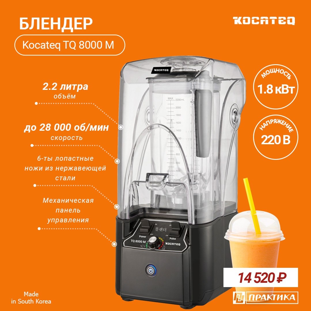 🥤ПРОФЕССИОНАЛЬНЫЙ БЛЕНДЕР KOCATEQ TQ8000M TQ 8000 M - это самая вместительная модель блендера в линейке KOCATEQ TQ. Объем стакана - внушительные 2.2 литра. Имеет механическую панель управления и до 28 000 об/мин. Звукопоглощающий съемный акриловый кожух эффективно подавляет шумы во время смешивания. В видео👆 доказали это с помощью шумомера. 🔘 14 520 ₽* *Цена актуальна на момент опубликования https://pectopah.ru/catalog/barnoe_oborudovanie/barnoe_mekhanicheskoe_oborudovanie/blendery_1/71816/ ◽️pectopah.ru ◽️zakaz@pectopah.ru ◽️Whatsapp ◽️+7 (495) 921-39-86 🤓 Подписывайся на Pectopah.ru