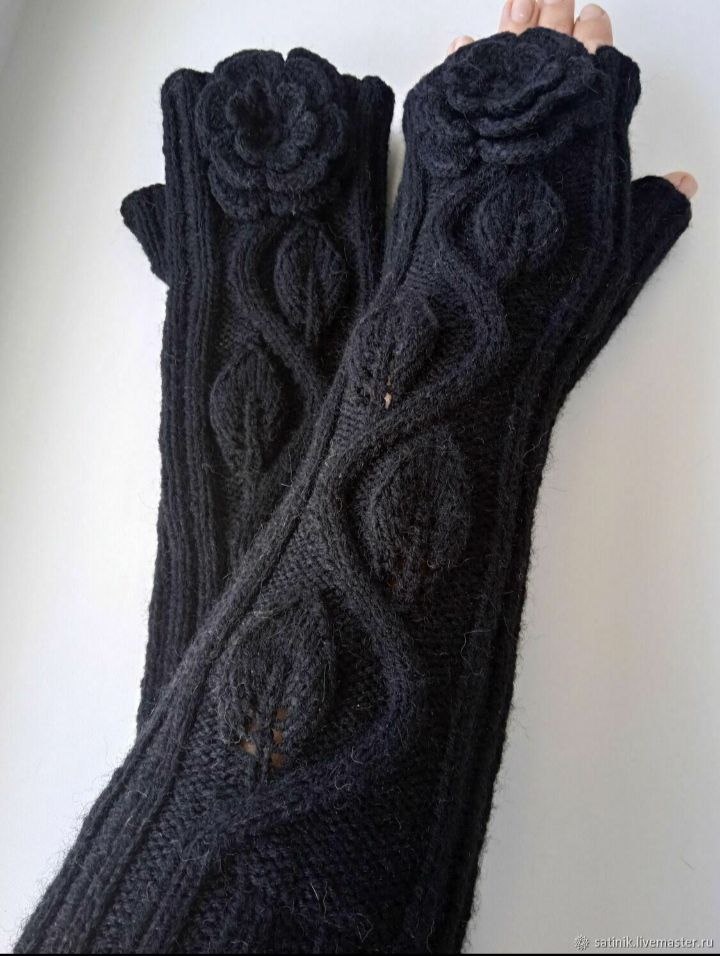 https://vk.com/market/product/mitenki-dlinnye-rozy-chernye-144591890-11495262 Митенки длинные Розы в черном цвете. Связаны из полушерсти, длина до локтя, бесшовные. Плотно сидят на руке, не спадают не скатываются вниз. Все модели митенок авторские. Мягкие,теплые, стильные