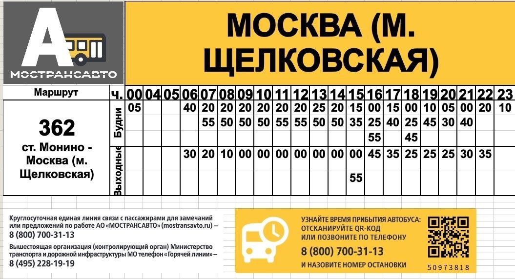 🛣 Изменения в расписании 362 маршрута с 9 апреля