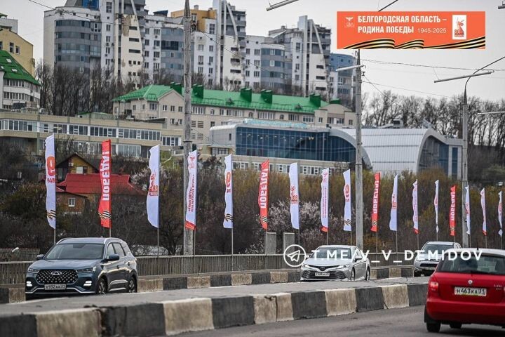 Белгород начали украшать ко Дню Победы. Снимками с места событий поделились в мэрии. В этом году в оформлении используют флаги России и Знамя Победы. Их уже разместили на опорах на улице Попова, а в дальнейшем аналогичное оформление появится на мостах и путепроводах. Эту работу планируют завершить к 12 апреля, а общественные пространства и площади украсят до 16 апреля. На центральных улицах появятся тематические консоли, баннеры, на учреждениях — постеры и плакаты.Арки в виде красной звезды установят на Соборной площади, в парке Победы, на улице 50-летия Белгородской области. Арт-объект «Знамя Победы над Рейхстагом» с фотографиями ветеранов Великой Отечественной войны появится до 16 апреля у музея-диорамы. Все элементы оформления выполнят в единой стилистике и брендбуке, утверждённом правительством РФ. В основе оформления окажется памятник «Родина-мать зовёт!» и исторические снимки, сделанные в годы войны.