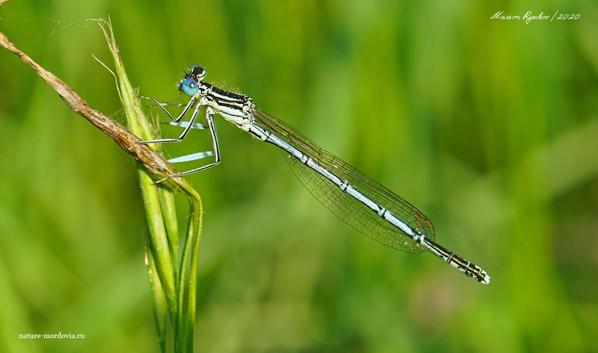 Небольшая стрекоза (длина тела 3,5 см, размах крыльев 4,5 см) из семейства плосконожки (Platycnemididae). Летает с мая по сентябрь. Встречается вблизи проточных водоёмов, с густой водной растительностью. С первого взгляда напоминают стрекоз-стрелок (Coenagrionidae), но, в отличии от них, у плосконожек голени средних и задних ног заметно расширены и ноги с длинными темными волосками. У Platycnemis pennipes очень широкая голова, если смотреть на нее сверху, то она будет примерно втрое шире своей длины (у стрелок — вдвое). Самец окрашен в голубой цвет с черными полосками на голове и брюшке, грудь черная с голубыми полосами. У самки рисунок такой же, но голубой цвет заменен зеленовато-серым. При этом, у самок и молодых особей окраска светлее. Эти стрекозы характеризуются медленным и порхающим полётом, обычно не отдаляются высоко от земли или растительности. К сожалению, какие-либо литературные данные по Мордовии, где бы упоминалась Platycnemis pennipes, просто-напросто отсутствуют, поэтому