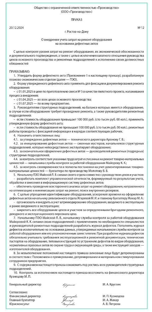 📎 Читайте в новом номере журнала «Планово-экономический отдел»! Учет затрат на ремонт оборудования на основании дефектных актов Существенной статьей расходов любой производственной компании является ремонт оборудования. Задача экономиста — проконтролировать такие расходы, обеспечить их прозрачность и, по возможности, оптимизировать. При этом нужно помнить, что расходы на ремонт основных средств должны быть экономически обоснованы и документально подтверждены. Одним из инструментов, позволяющих решить все поставленные задачи, является дефектный акт на ремонт оборудования. Из апрельского номера журнала «Планово-экономический отдел» вы узнаете: 🖊 какие аспекты обязательно должны быть отражены в дефектном акте; 🖊 как составить и правильно заполнить дефектный акт; 🖊 как оформить приказ о внедрении учета затрат на ремонт оборудования на основании дефектных актов; 🖊 почему учет и обработку дефектных актов нужно поручить экономисту ПЭО; 🖊 в чем преимущества внедрения дефектных актов.