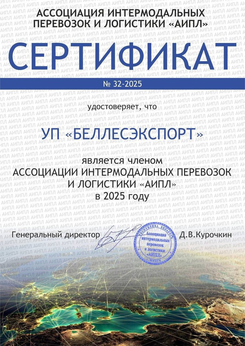 Новый вектор развития 🚀 УП «БЕЛЛЕСЭКСПОРТ» вступило в члены Ассоциации интермодальных перевозок и логистики «АИПЛ» 🌐 Контакты: Отдел логистики 📦 +375 17 259 17 41 logistics@bellesexport.by Отдел железнодорожного транспорта 🚂 +375 17 259 17 56 transport@bellesexport.by